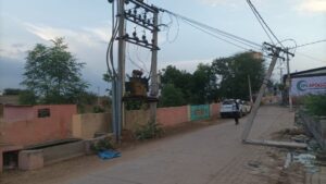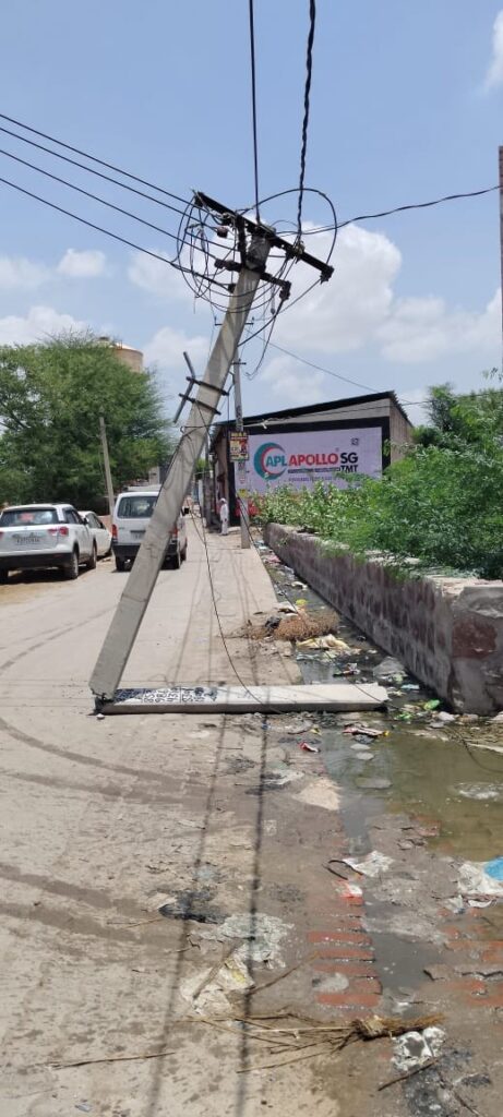 कस्बें के मोमासर बास वार्ड नं. 4 स्थित श्मशान भूमि के पास एक विद्युत पोल टूटकर आधा सड़क पर झुक गया है। और पोल अब भी विद्युत सप्लाई चालू है।, जिससे किसी भी समय बड़ी दुर्घटना की आशंका बनी हुई है।गोभक्त आनंद जोशी ने बताया की दो दिनों से पोल टूटकर आधा झुका हुआ है। तार काफी नीचे झूल रहे हैं और टूटे हुए पोल का संतुलन इन्हीं तारों पर टिका हुआ है। और ऐसे में यह न केवल राहगीरों के लिए खतरनाक है बल्कि स्थानीय निवासियों और गुजरने वाले वाहनों के लिए भी जोखिम भरी है। स्थानीय लोगों ने विद्युत विभाग से तुरंत कार्रवाई की मांग की है ताकि समय रहते पोल को ठीक किया जाए ताकि कोई बड़ी अनहोनी होने से बच जाए