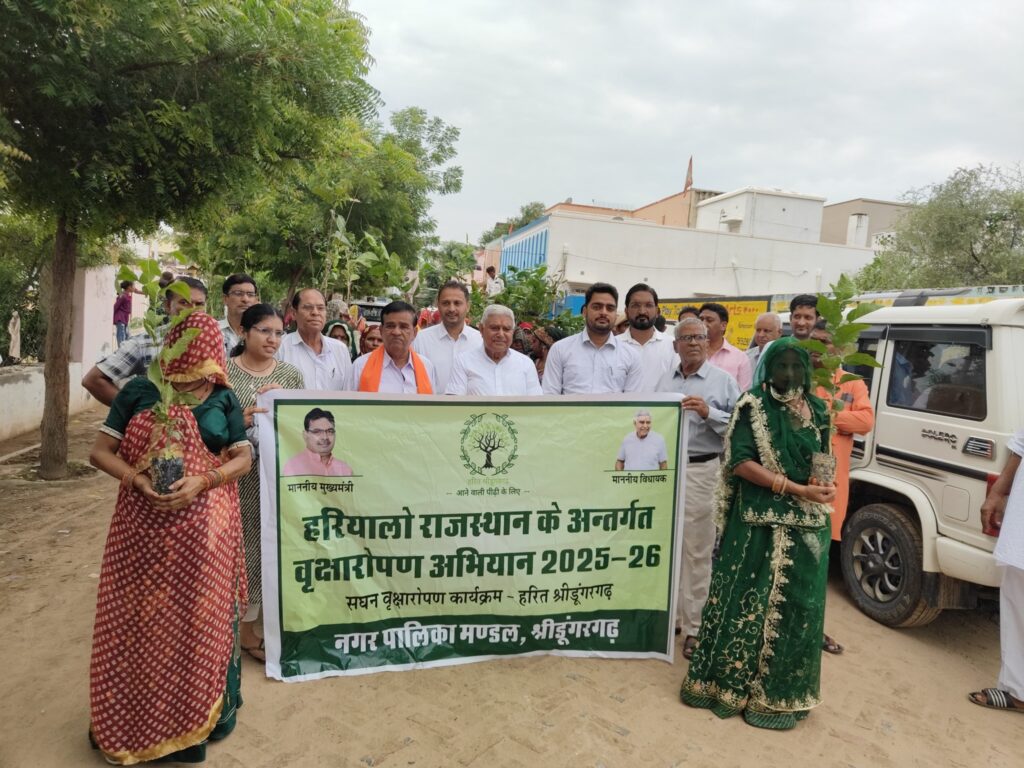 हरियालो राजस्थान अभियान के अंतर्गत श्रीडूंगरगढ़ में सघन वृक्षारोपण कार्यक्रम का आयोजन उत्साहपूर्वक समपन्न हुआ इस आयोजन में जनप्रतिनिधियों, प्रशासनिक अधिकारियों, भाजपा कार्यकर्ताओं व नगरवासियों ने सक्रिय सहभागिता निभाई।