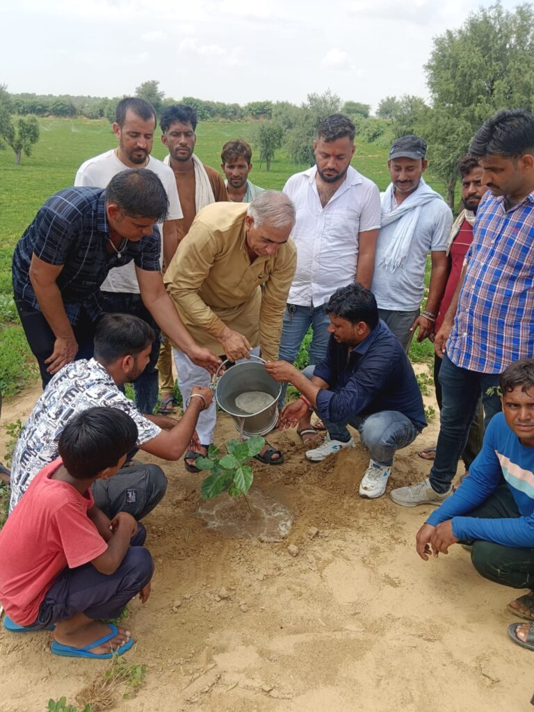 प्रधानमंत्री नरेन्द्र मोदी के आह्वान पर “एक पेड़ मां के नाम” अभियान तथा मुख्यमंत्री भजनलाल शर्मा की अपील पर “हरियालो राजस्थान” महाअभियान के तहत आज क्षेत्र के गांव तोलियासर के गोगाणा ताल में श्री विश्वकर्मा कौशल विकास बोर्ड के अध्यक्ष, संगठन प्रभारी चुरू रामगोपाल सुथार ने कार्यकर्ताओं के साथ सघन पौधारोपण कर पर्यावरण संरक्षण का संदेश दिया। इस दौरान सुथार ने एक पेड़ माँ के नाम लगाने का संदेश दिया। उन्होंने कहा कि जब हम मां के नाम एक पेड़ लगाते हैं, तो हम धरती को भी मातृत्व का सम्मान दे रहे होते हैं।उन्होंने सभी से पेड़ लगाने की अपील की। इस अवसर पर विजय सिंह राजपुरोहित मनोज राजपुरोहित, हेमंत ,अशोक सिंह दुष्यंत सिंह, निर्मल दशरथ सिंह, भरत राजपुरोहित नवरत्न राजपुरोहित, रौनक सिंह, राजू मेघवाल, अशोक मेघवाल, शेराराम, गोपाल मेघवाल, कालू सभी युवाओं ने हरियाली तीज के अवसर पर “हरियालो राजस्थान” और “एक पेड़ मां के नाम” अभियान के तहत पौधों का रोपण कर उनके संरक्षण व देखरेख की जिम्मेदारी का संकल्प लिया। राज्य मंत्री सुथार ने सभी का आभार जताया