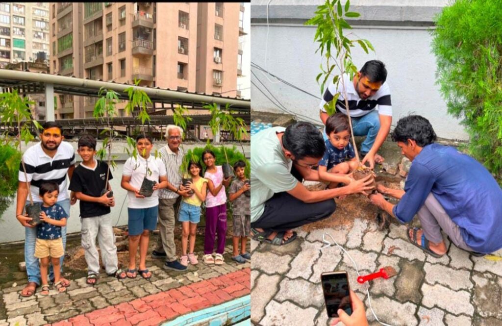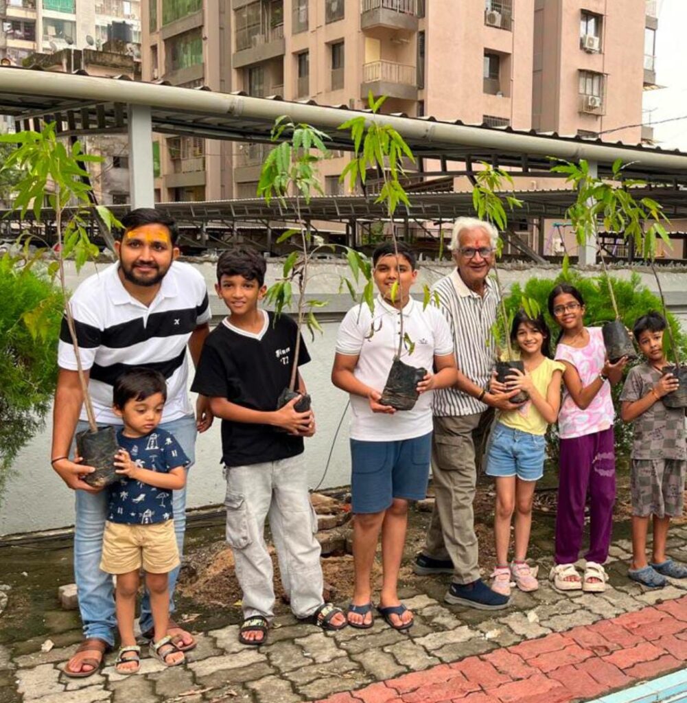 रविवार को हरियाली तीज पर सूरत में बच्चों द्वारा पर्यावरण के प्रति जागरूकता लाने के लिए एक पेड़ अपने परिवार के नाम के अंतर्गत पौधारोपण का कार्यक्रम आयोजित किया। नन्हें बच्चों ने नंदिनी सोसाइटी, वेसु,सूरत में विभिन्न प्रकार के छायादार व फलदार पौधो का रोपण कर पर्यावरण संरक्षण का संदेश दिया बच्चों ने कहा मानव जीवन पूर्ण रूप से स्वस्थ तभी होगा जब कदम-कदम पर पौधे लगेंगे। पौधरोपण जीवन के लिए बेहद जरूरी है। आक्सीजन देने वाले पौधों की महत्ता को दरकिनार नहीं किया जा सकता। हमें मुफ्त में आक्सीजन पेड़-पौधे ही देते हैं। बच्चों ने कहा कि पेड़ लगाने से वर्षा होती है। पेड़ पौधे लगाने से गर्मी में छाया होती है फल फूल मिलते है। सभी इंसान को कम से कम एक पेड़ अपने जीवन में जरूर लगाना चाहिए। बच्चों ने प्रधानमंत्री मोदी के एक पेड़ माँ के नाम अभियान का जिक्र करते हुए कहा कि हम सभी को मिकलर मोदी जी के अभियान को आगे बढ़ाना चाहिए और एक पेड़ जरूर लगाना चाहिए इस दौरान सोसायटी के नागरिकों सहित अभिभावकों ने भी पौधारोपण कर उनकी देखरेख व सुरक्षा का संकल्प लिया।