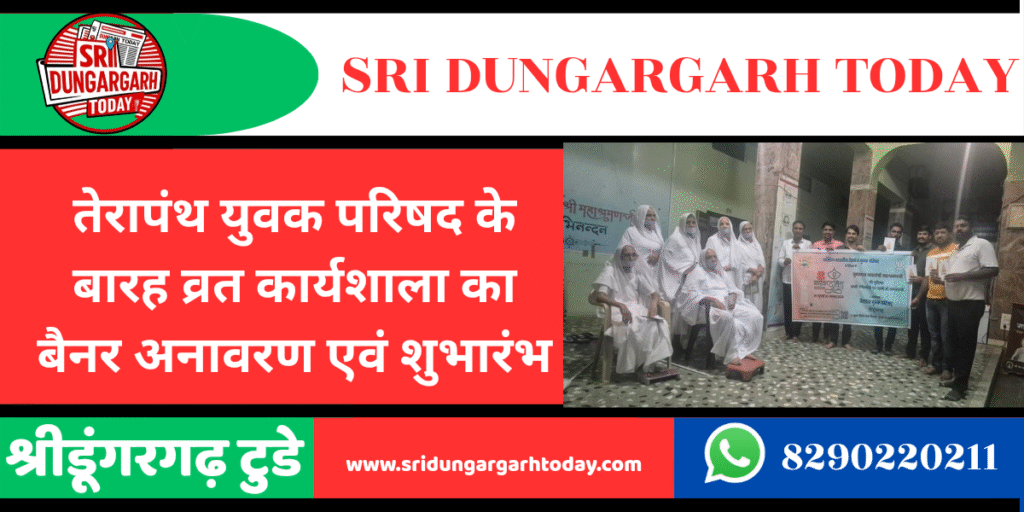 तेरापंथ युवक परिषद द्वारा आयोजित बारह व्रत कार्यशाला का शुभारंभ हर्षोल्लास के साथ हुआ। कार्यक्रम की शुरुआत कार्यशाला के बैनर अनावरण से हुई, जिसे तेरापंथ युवक परिषद व तेरापंथ किशोर मंडल की उपस्थिति में संपन्न किया गया।