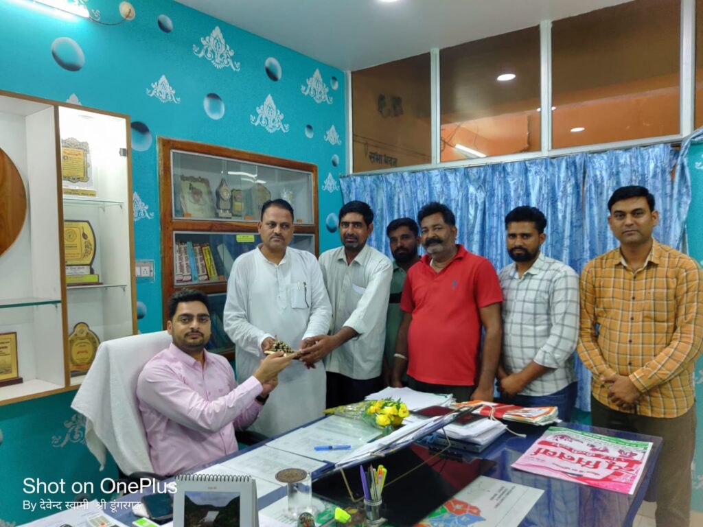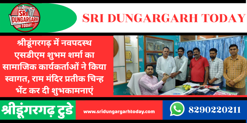 श्रीडूंगरगढ़ में नवपदस्थापित उपखंड अधिकारी शुभम शर्मा के स्वागत सम्मान का क्रम जारी है। सोमवार को उपखंड अधिकारी शुभम शर्मा का स्थानीय सामाजिक कार्यकर्ताओं और पत्रकारों ने गर्मजोशी से स्वागत किया। उपखंड कार्यालय पहुंचे प्रतिनिधिमंडल ने एसडीएम शर्मा का माल्यार्पण कर अभिनंदन किया और क्षेत्र की समस्याओं व विकास से जुड़े मुद्दों पर सकारात्मक संवाद किया। इस दौरान सामाजिक कार्यकर्ता राजेंद्र कुमार स्वामी वरिष्ठ पत्रकार अशोक कुमार पारीक सातलेरा गांव के सामाजिक कार्यकर्ता गौरी शंकर तावनियाँ, शहीद हेतराम गोदारा के भाई राजाराम गोदारा, आमिर खान, देवेंद्र स्वामी सहित युवाओं ने नवपदस्थापित उपखंड अधिकारी शुभम शर्मा को राम मंदिर का प्रतीक चिन्ह भेंट कर शुभकामनाएं दी। सामाजिक कार्यकर्ता राजेंद्र प्रसाद स्वामी ने श्री डूंगरगढ़ में ट्रॉमा सेंटर में हो रही देरी व जनसमस्याओं से अवगत कराया उन्होंने उम्मीद जताई कि क्षेत्र की स्वास्थ्य सुविधाओं को मजबूत करने के लिए नवपदस्थापित एसडीएम सकारात्मक पहल करेंगे।