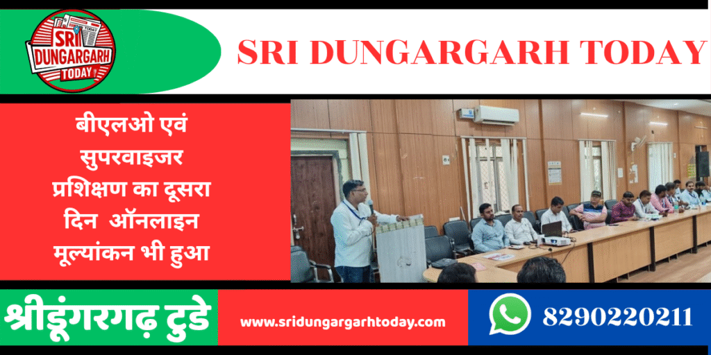 प्रशिक्षण के उपरांत प्रतिभागियों का ऑनलाइन मूल्यांकन भी किया गया। कार्यक्रम का संचालन डीएलएमटी पवन कुमार माली के निर्देशन में एएलएमटी मनीष कुमार सैनी, नौरतमल शर्मा, सहीराम भामू और श्रवण कुमार मोटसरा ने किया। बीएलओ सुपरवाइजर रजिस्ट्रेशन और प्रशिक्षण की व्यवस्थाएं पूरब चंद जाखड़ व ओम प्रकाश द्वारा संभाली गईं।