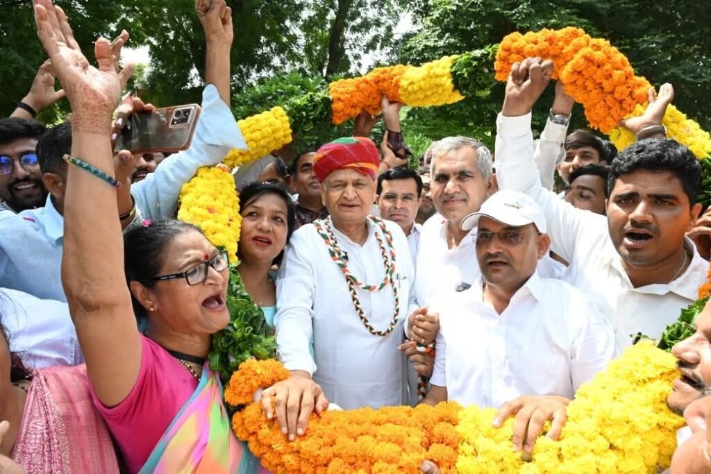 पूर्व सीएम अशोक गहलोत आज बीकानेर दौरे पर रहें और इस अवसर श्रीडूंगरगढ़ के पीसीसी सदस्य सहित नेताओं और कार्यकर्ताओं ने गर्मजोशी के साथ उनका स्वागत किया कार्यकर्ताओं ने गहलोत को सम्मान साफा पहनाकर व पुष्पगुच्छ भेंट कर सम्मानित किया। इस दौरान गहलोत से पंचायतीराज चुनाव शीघ्र करवाए जाने के लिए मांग विधानसभा में उठाने की बात ही कही। इस दौरान स्वागत करने वालों में पीसीसी सदस्य हरिराम बाना, ब्लॉक अध्यक्ष राधेश्याम सिद्ध, सेवादल के संभाग प्रभारी विमल भाटी, रमेश प्रजापत, संतोष गोदारा, डालूराम मेघवाल, किशन सियाग, ओमप्रकाश मेघवाल, पूर्व सरपंच धर्मपाल बांगड़वा, मुन्नीराम भादू, हेतराम डेलू, रेखाराम लुखा, प्रकाश दुसाद मौजूद रहें। सभी कार्यकर्त्ताओं ने मिलकर जमकर नारेबाजी करते हुए गहलोत का स्वागत किया।