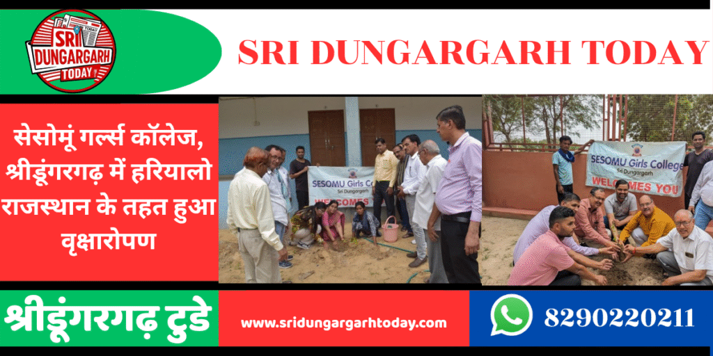 श्रीडूंगरगढ़। कस्बे के एकमात्र निजी कन्या महाविद्यालय सेसोमूं गर्ल्स कॉलेज में बुधवार को हरियालो राजस्थान के तहत वृक्षारोपण किया गया। इस अवसर पर नीम, पीपल, कनेर, परिजात आदि के वृक्ष रोपे गए। इस अवसर पर महाविद्यालय के सचिव सुभाष शास्त्री ने कहा कहा कि वृक्ष हमारी संस्कृति का अभिन्न अंग है और स्वच्छ पर्यावरण और पृथ्वी पर पर्यावरण संतुलन हेतु आवश्यक है। स्वैच्छिक रूप से वृक्षारोपण कर वृक्षारोपण अभियान को सफल करने का आह्वान किया और साथ ही जोर दिया की वृक्षों को लगाने के साथ-साथ उनकी रक्षा भी करनी होगी।