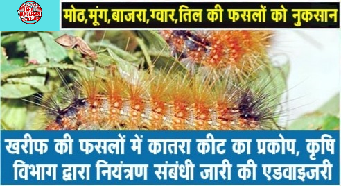 जिले में खरीफ फसल ग्वार, बाजार, मोठ, मुंगफली इत्यादि में कहीं-कहीं कातरा के प्रकोप की सूचना प्राप्त होने पर कृषि विभाग द्वारा सर्वे कर कातरा के प्रकोप का स्तर जान तत्काल नुकसान क्षेत्र का सघन निरीक्षण कर किसानों को नियंत्रण उपाय सुझाए हैं। संयुक्त निदेशक कृषि कैलाश चौधरी ने बताया कि कई जगह कातरा का प्रकोप आर्थिक हानि स्तर से ऊपर पाया है। जिले में श्रीडूंगरगढ़, नोखा, पांचू, कोलायत के खेतों में कातरा का प्रकोप बिखरे हुए क्षेत्र में नजर आया है। कृषि विभाग के संयुक्त निदेशक कृषि कैलाश चौधरी के अनुसार कातरा कीट के पतंगे वर्षा ऋतु की शुरुआत में विशेष रूप से पहली अच्छी वर्षा के बाद जमीन से निकलते हैं और प्रकाश की ओर आकर्षित होते हैं। कातरा कीट खरीफ फसलों में मोठ, मूंग, बाजरा, ग्वार, तिल की फसलों के लिए नुकसानदायक है। मादा कीट एक बार में 600 से 7सौ अंडे देती है, जिनसे 2 से 3 दिन में लटें निकल आती हैं। मादा पतंगें पत्तियों की निचली सतह पर अंडे देती हैं, जो पीले रंग के होते हैं और पोस्त के बीज जैसे दिखते हैं। इन अंडों से सूंडियां या लार्वा या लटें निकलती हैं, जो पौधों की पत्तियों को खाती हैं। इसके अलावा इसकी लटें कीड़े के बच्चे फसलों की पत्तियों को कुतरकर नष्ट कर देती है, जिससे पौधे सूखकर मर जाते हैं।