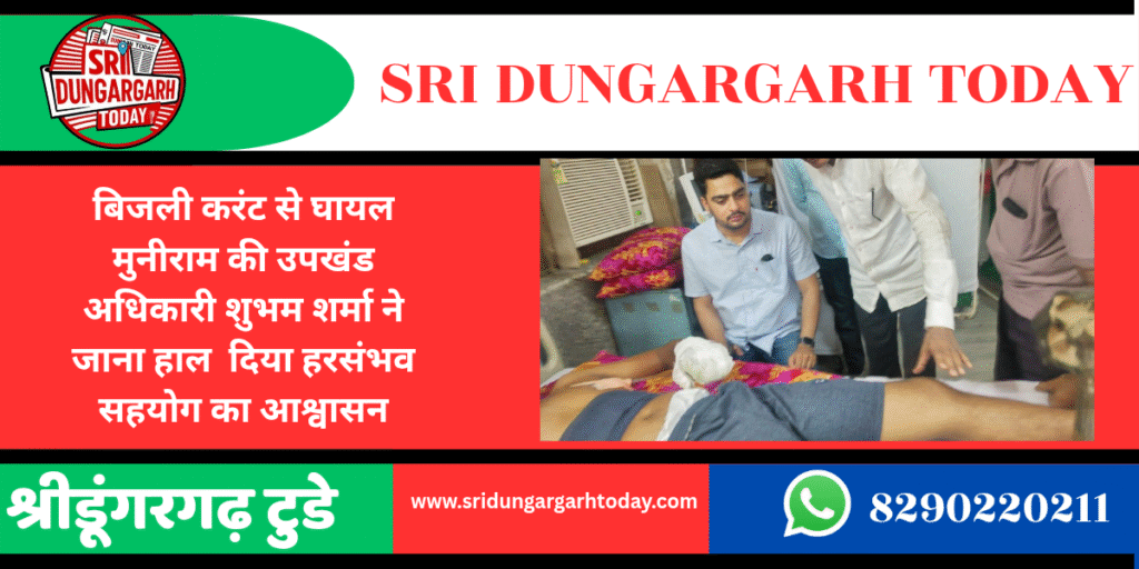 उपखंड क्षेत्र श्रीडूंगरगढ़ के गांव उदरासर निवासी मुनीराम पुत्र हड़मानाराम जाति ब्राह्मण करंट की चपेट में आने से घायल हो गए, जिसका पीबीएम अस्पताल में इलाज चल रहा है। उपखंड अधिकारी शुभम शर्मा ने पीबीएम अस्पताल जाकर मुनीराम के हाल जाने तथा उपस्थित परिवारजनों को हरसंभव प्रशासनिक मदद हेतु आश्वस्त किया। मुनीराम एक संविदाकर्मी के रूप में जोधपुर विद्युत वितरण निगम लिमिटेड के जीएसएस पर कार्य कर रहा था, दिनांक 28.07.2025 को बाधित विद्युत आपूर्ति को दुरुस्त करने हेतु विभाग के कनिष्ठ अभियंता के साथ विद्युत पोल को ठीक करने के दौरान विद्युत् की चपेट में आ जाने से शरीर में चोट आ गई, जिसको स्थानीय अस्पताल से प्राथमिक चिकित्सा के बाद ट्रॉमा सेंटर बीकानेर के लिए रैफर किया गया। घायल मुनीराम को आर्थिक सहायता दिलवाने हेतु क्षेत्रवासियों ने उपखंड अधिकारी श्री शुभम शर्मा को ज्ञापन दिया। श्री शर्मा ने विभागीय अधिकारियों से समन्वय स्थापित कर घायल को आर्थिक सहायता हेतु त्वरित विभागीय कार्यवाही करने हेतु निर्देशित किया तथा भविष्य में इस तरह की घटनाओं से बचाव कार्यवाही हेतु आवश्यक निर्देश दिए। उपखंड अधिकारी ने बारिश के मौसम को देखते हुए क्षेत्रवासियों से विद्युत उपकरणों से आवश्यक एहतियात बरतने हेतु भी अपील की।