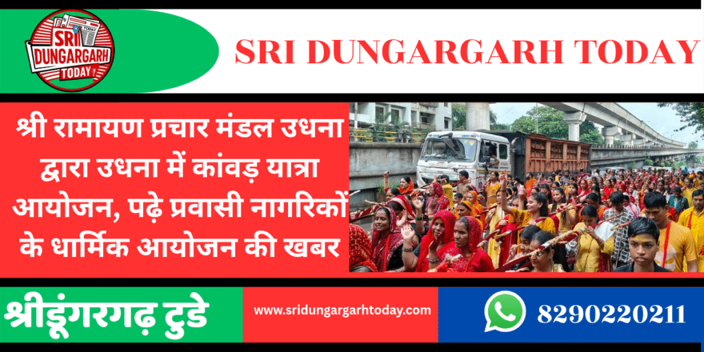 की ओर से पवित्र श्रावण मास में उधना में सार्वजनिक 14 वीं भव्य विशाल नि:शुल्क कावड़ यात्रा का आयोजन रविवार को किया गया कावड़िए सुबह 5 बजे श्री आशा पूरा हनुमान जी मंदिर,आशा नगर- 1,उधना एवम् श्री हरिहर महादेव मंदिर,हरी नगर 3,उधना से कांवड़ पूजन कर तात्पी नावड़ी घाट के लिए प्रस्थान किया, तत्पश्चात ताप्ती नावडी घाट पर पवित्र जल लेकर कांवड़ पूजा आरती कर के कावड़िए डीजे की धुन पर नाचते गाते हुए बोल बम के जयकारे लगाते हुए उधना स्थित शिवालयो में पहुंचकर वैदिक मंत्रोच्चार के साथ जलाभिषेक किया। इस दौरान शिवालय बोल बम हर हर महादेव के जयकारो से गूंज उठा पूरा माहौल भक्तिमय हो गया।
