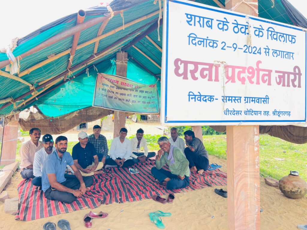 क्षेत्र के गांव धीरदेसर चोटियान में शराब ठेका बन्द करने की मांग को लेकर 338वें दिन ग्रामीणों का धरना जारी है । गाँव के युवा, बुजुर्ग एवं बच्चे लम्बे समय से शांति पूर्वक शराब बन्दी की मांग की मांग को लेकर इस भयंकर गर्मी में संघर्षरत है । न्यायालय द्वारा वोटिंग करवाने के आदेश के बावजूद प्रशासन द्वारा वोटिंग की दिनांक अभी तक घोषित नहीं करना दुर्भाग्यपूर्ण है । ग्रामीण इस बरसात के मौसम में खुले टेन्ट के नीचे बैठे ग्रामीणों की कोई सुध लेने को तैयार नहीं है । आमजन के सामने बड़ा प्रश्न खड़ा हो रहा है कि न्यायालय के आदेशों के बावजूद सरकार एवं प्रशासन किसके दबाव में काम कर रहे है । गांव में शराब की भयंकर त्रासदी झेल चुके ग्रामीण कड़कड़ाती सर्दी से लेकर अब तक खुले मैदान में डटे हुए वोटिंग की तिथि घोषित होने का इंतजार कर रहे है । आज धरने पर  कांग्रेस नेता हरिराम बाना ने पहुंचकर धरने को समर्थन देते हुए कहा कि हठ धर्मी सरकार लोकतंत्र को खत्म करने में लगी हुई है । सरकार के दबाव में प्रशासन द्वारा न्यायालय के आदेशों की अवहेलना की जा रही है । आमजन के लोकतांत्रिक अधिकारों को सरकार एवं प्रशासन द्वारा इस प्रकार से द्वेषपूर्ण तरीके से कुचला जा रहा है जिसका परिणाम भुगतना पड़ेगा । आज धरने पर एडवोकेट श्याम सुंदर आर्य, हरिराम सहू, सांवरमल सहू, सहिराम, श्याम सुंदर मनफूल,नयन कुमार, भागीरथ, राजकुमार, मुकेश,तेजपाल किशन चोटिया उपस्थिति रहे ।