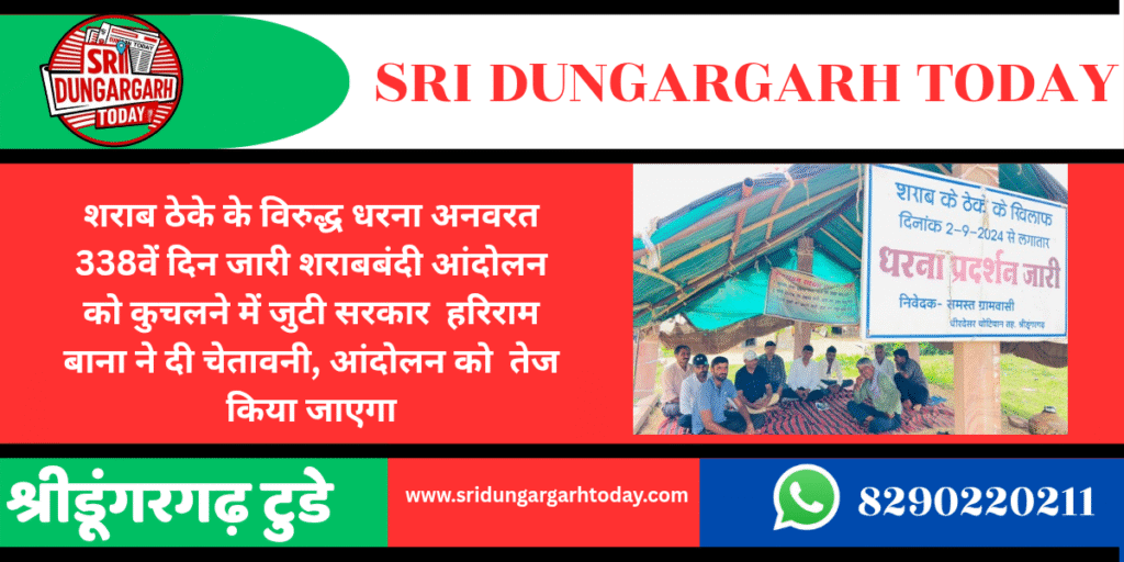 शराब ठेके के विरुद्ध धरना अनवरत 338वें दिन जारीशराबबंदी आंदोलन को कुचलने में जुटी सरकार हरिराम बाना ने दी चेतावनी, आंदोलन को तेज किया जाएगा
