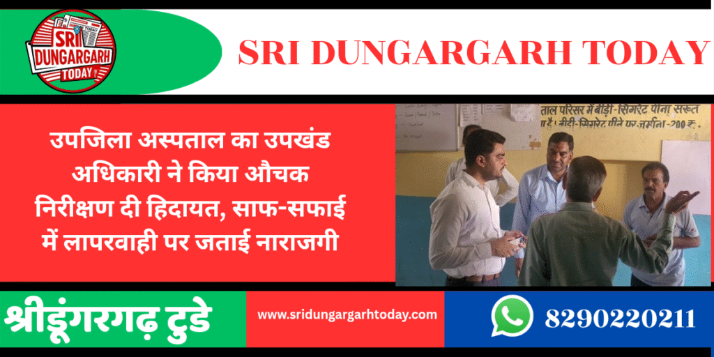 उपखंड अधिकारी शुभम शर्मा ने बुधवार को उपजिला अस्पताल का औचक निरीक्षण किया। निरीक्षण के दौरान SDM ने ओपीडी, लेब, एक्सरे रूम, बच्चा वार्ड और जनाना वार्ड का जायजा लिया। कई वार्डों में सफाई व्यवस्था खराब पाई गई, जिस पर उन्होंने नाराजगी जाहिर करते हुए मौके पर मौजूद अधिकारियों को सुधार के निर्देश दिए।