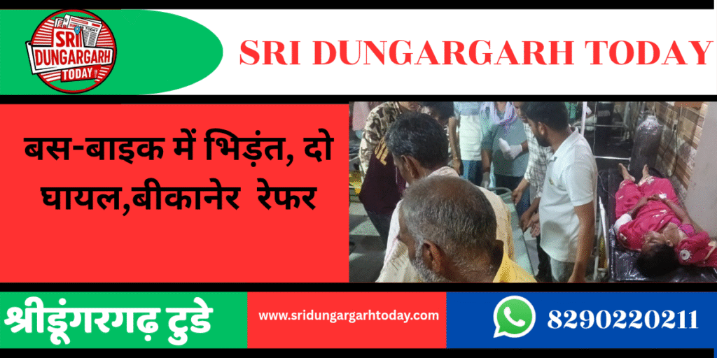 सूचना मिलते ही डॉ. एपीजे अब्दुल कलाम वेलफेयर सोसायटी के सेवादार मौके पर पहुंचे और घायलों को एम्बुलेंस से श्रीडूंगरगढ़ के उपजिला अस्पताल पहुंचाया। यहां प्राथमिक उपचार के बाद हालत नाजुक होने पर दोनों को बीकानेर रेफर कर दिया गया। घायलों की पहचान लाछड़सर निवासी हरिराम प्रजापत (30) पुत्र भजनाराम प्रजापत और अन्नपूर्णा (25) पत्नी हरि प्रजापत के रूप में हुई है।