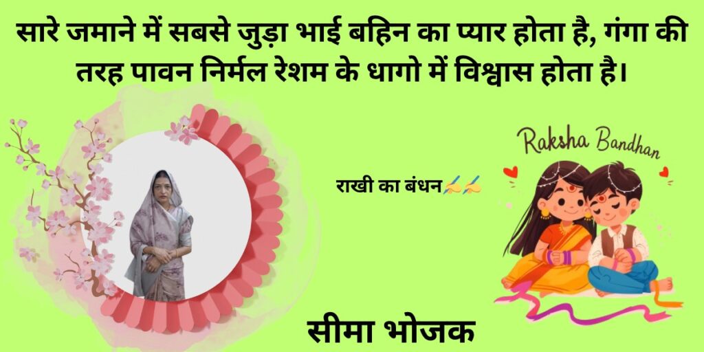 ये पर्व नहीं सिर्फ रीति रिवाज,यह दिलों का प्यारा अंदाज, रक्षाबंधन है रिश्तों की पहचान जहाँ हर बहिन का भाई है जान।