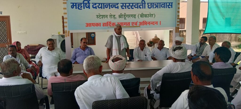 महर्षि दयानंद सरस्वती छात्रावास विकास समिति श्रीडूंगरगढ़ की बैठक 10 अगस्त रविवार को एडवोकेट श्याम सुन्दर आर्य की अध्यक्षता में छात्रावास में आयोजित की गई । संस्था के मंत्री सुशील सेरडिया ने बैठक का एजेण्डा प्रस्तुत करते हुए दानदाताओं के सहयोग से निर्मित कार्यो की प्रगति रिपोर्ट प्रस्तुत की, जिसकी समीक्षा की गई