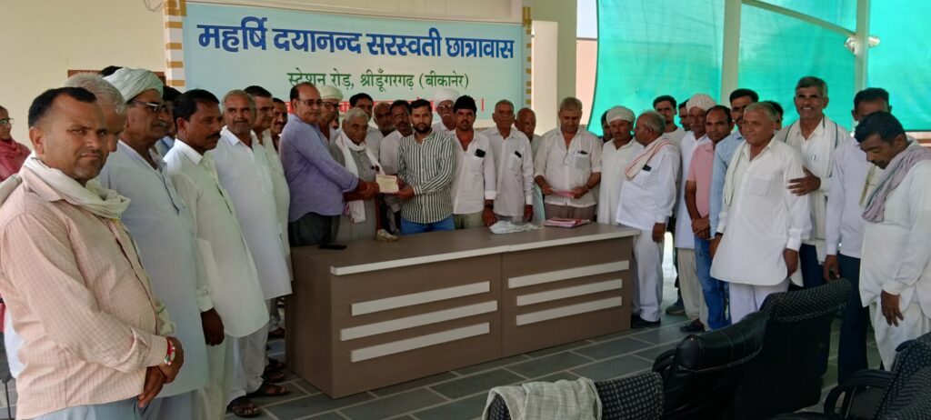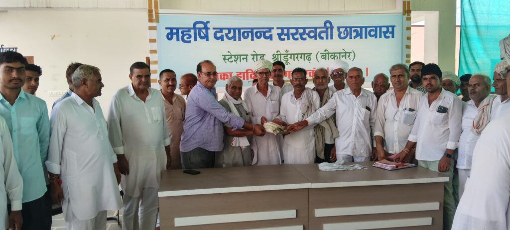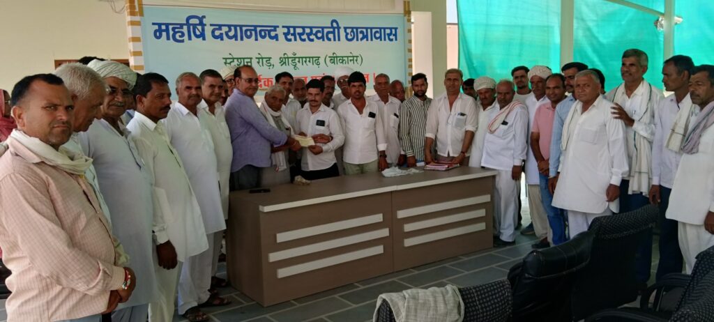 3 बैठक में दिवंगत ईश्वरराम, दिवंगत रामेश्वरराम, दिवंगत गोविन्दराम गोदारा बींझासर की स्मृति में सुपुत्र गंगाराम भगवानाराम, हंसराज, मोहनराम गोदारा ने सहयोग राशि 1.01 लाख रुपये छात्रावास मैनेजमेंट को सौंपी ।