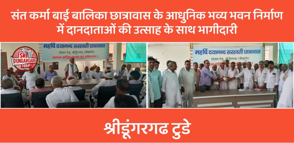 महर्षि दयानंद सरस्वती छात्रावास विकास समिति श्रीडूंगरगढ़ की बैठक 10 अगस्त रविवार को एडवोकेट श्याम सुन्दर आर्य की अध्यक्षता में छात्रावास में आयोजित की गई । संस्था के मंत्री सुशील सेरडिया ने बैठक का एजेण्डा प्रस्तुत करते हुए दानदाताओं के सहयोग से निर्मित कार्यो की प्रगति रिपोर्ट प्रस्तुत की, जिसकी समीक्षा की गई