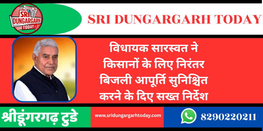 विधायक सारस्वत ने किसानों के लिए निरंतर बिजली आपूर्ति सुनिश्चित करने के दिए सख्त निर्देश