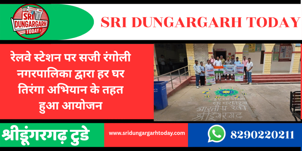 नगरपालिका मण्डल की ओर से हर घर तिरंगा अभियान के अंतर्गत रेलवे स्टेशन परिसर में विशेष कार्यक्रम आयोजित किया गया। परिसर में आकर्षक रंग-बिरंगी रंगोली सजाकर आज़ादी के अमृत महोत्सव का संदेश दिया गया। टीम के सदस्यों ने हाथों में बैनर लेकर लोगों से अपने-अपने घरों पर तिरंगा फहराने की अपील की।