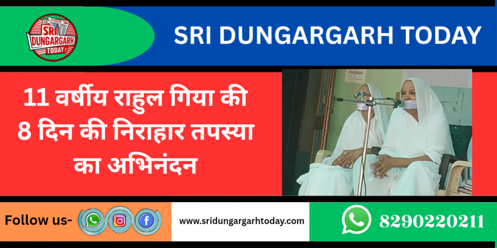 श्रीडूंगरगढ़। सेवा केंद्र मालू भवन में रविवार को गिया परिवार के बालक राहुल गिया (11) सुपुत्र कुमुद गिया-ऋतु देवी का तप अभिनंदन हुआ। राहुल ने लगातार 8 दिन की निराहार तपस्या पूरी की।