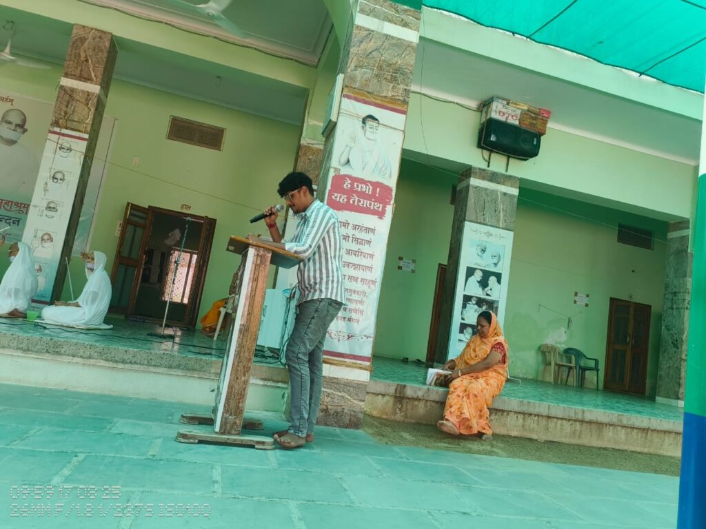 कार्यक्रम साध्वी संगीतश्री और साध्वी डॉ. परमप्रभा के सान्निध्य में आयोजित हुआ। मंगलाचरण उर्मिला गिया ने किया। इस अवसर पर तेरापंथ सभा से उपाध्यक्ष दीपमाला डागा, तेयुप अध्यक्ष विक्रम मालू, महिला मंडल कोषाध्यक्ष सुमन पुगलिया, किशोर मंडल से यश चौपड़ा और ज्ञानशाला प्रशिक्षिका विजेता चौपड़ा सहित कई पदाधिकारी मौजूद रहे।