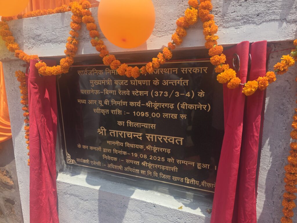 मुख्यमंत्री बजट घोषणा के अंतर्गत सार्वजनिक निर्माण विभाग, राजस्थान द्वारा स्वीकृति परसनेऊ-बिग्गा रेलवे स्टेशन (373/3-4) के मध्य बनने वाले (आरयूबी) निर्माण कार्य का शिलान्यास श्रीडूंगरगढ़ विधायक ताराचंद सारस्वत ने मंगलवार को बिग्गा गांव में हजारों ग्रामवासियों की मौजूदगी में किया।