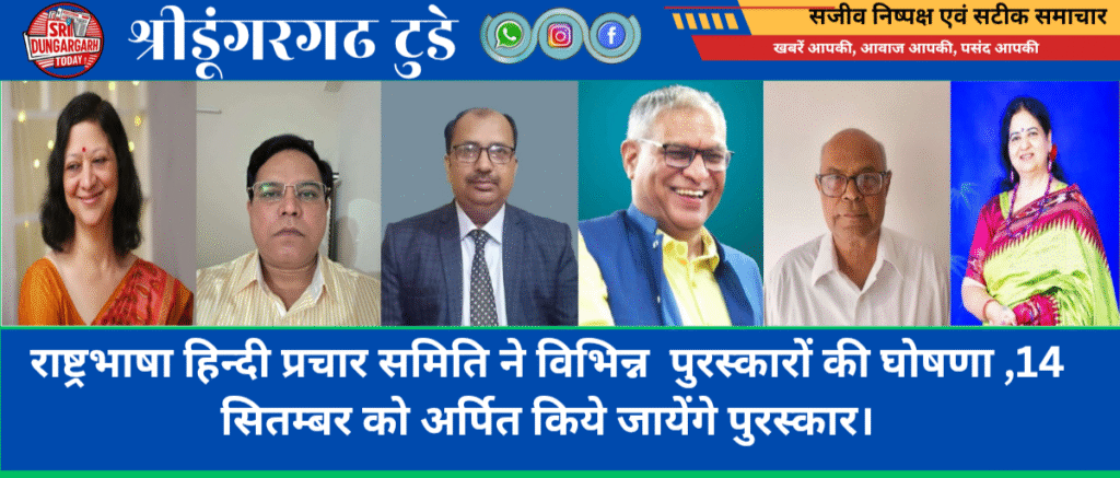 राष्ट्रभाषा हिन्दी प्रचार समिति ने विभिन्न पुरस्कारों की घोषणा,14 सितम्बर को अर्पित किये जायेंगे पुरस्कार।