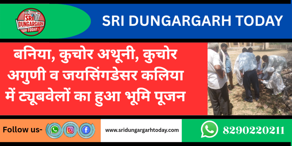ग्रामीण क्षेत्र की बढ़ती मांग को देखते हुए आज श्रीडूंगरगढ़ विधायक ताराचंद सारस्वत के निर्देशन में पूर्व मंडल अध्यक्ष गिरधारीलाल गोदारा के नेतृत्व में ग्राम बनिया,कुचोर,अथूनी कुचोर अगुणी व जयसिंगडेसर कलिया में ट्यूबवेलों का भूमि पूजन किया गया।