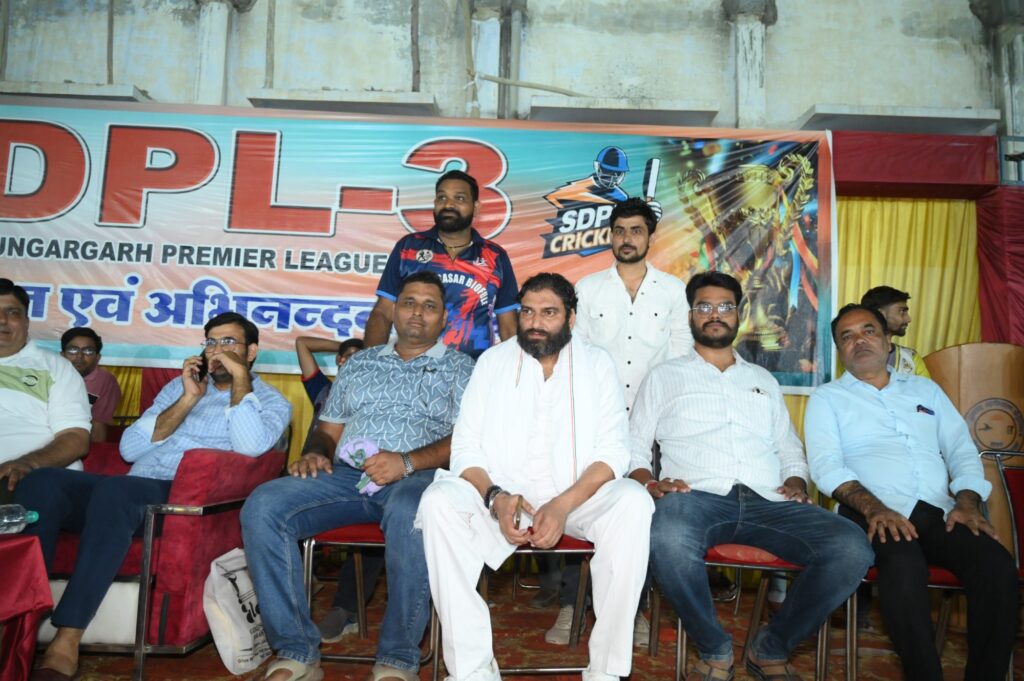 श्रीडूंगरगढ़ प्रीमियर लीग (SDPL) का समापन मंगलवार देर रात हुआ। फाइनल मुकाबले में संत रविदास क्लब ने शानदार खेलते हुए विजेता ट्रॉफी अपने नाम की रॉयल चैलेंजर बीकानेर उपविजेता रही है। समारोह में नगर पालिका अध्यक्ष मानमल शर्मा,पार्षद भरत सुथार,बाबा सिकंदर श्योराण राजू चौपदार, श्रीचंद जोशी, अनिल जोशी, बृजलाल तावनियां, कमल गरनानी ,जाकिर चौपदार शुभकरण उपाध्याय,दीनदयाल माली, मैक्स सुथार सहित SDPL आयोजन कमेटी के सदस्य उपस्थित रहे। बाबा सिकंदर श्योराण ने विजेता और उपविजेता को पुरस्कार वितरण किया इस दौरान उन्होंने खिलाड़ियों को खेल भावना का संदेश देते हुए दोनों टीमों को शानदार खेल प्रदर्शन दिखाने का धन्यवाद ज्ञापित किया। आयोजन समिति ने बाबा सिकंदर श्योराण को शानदार सहयोग करने पर उनका धन्यवाद किया