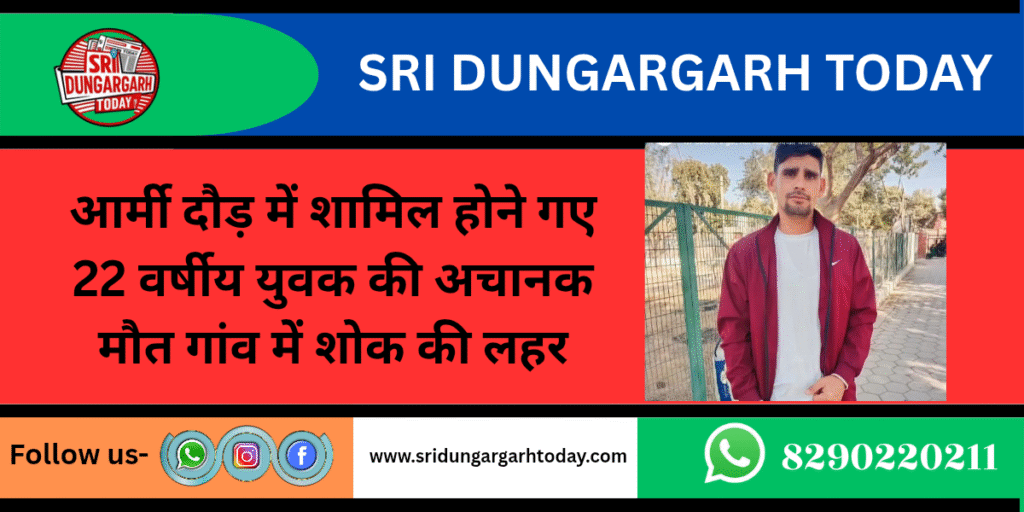 बीकानेर जिले के कल्याणसर नया गांव निवासी 22 वर्षीय मुन्नीराम गोदारा की जोधपुर में आर्मी भर्ती की दौड़ के दौरान मौत हो गई। जानकारी के अनुसार, 21 अगस्त को फिजिकल परीक्षा के दौरान वह दौड़ पूरी करने के बाद अचानक गिरकर बेहोश हो गया। मौके पर मौजूद जवानों ने उसे मथुरादास माथुर अस्पताल पहुंचाया, जहां 22 अगस्त की रात करीब ढाई बजे उसकी मौत हो गई।मुन्नीराम को जब एमडीएम लाया गया था तो उसकी सभी जांच हुई थी। उसके शरीर पर कोई चोट के निशान नहीं थी। किसी दूसरी बीमारी के भी कोई सिम्पटम्स नहीं नजर आए। इसलिये डॉक्टरों ने कार्डियक अटैक की आशंका जताई है, हालांकि पोस्टमार्टम रिपोर्ट का इंतजार है। मुन्नीराम बीकानेर में रहकर सरकारी नौकरी की तैयारी कर रहा था। उसके परिवारजन उसकी नौकरी की उम्मीद में थे, लेकिन हादसे ने पूरे गांव को शोकाकुल कर दिया। शुक्रवार शाम को गांव में उसका अंतिम संस्कार कर दिया गया।