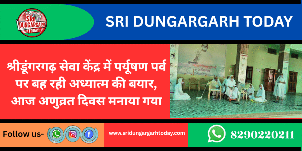श्रीडूंगरगढ़। जैन समाज का सबसे बड़ा पर्व पर्यूषण पर्व बुधवार 20अगस्त को सेवा केंद्र मालू भवन से शुरू हुआ। यह पर्व 28 अगस्त तक चलेगा और अंतिम दिन सामूहिक क्षमायाचना के साथ पूर्ण होगा।
