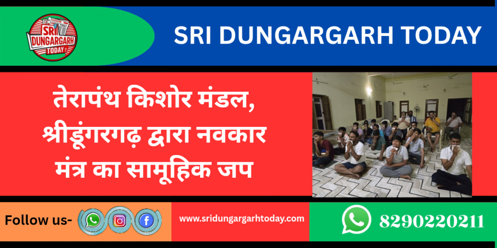 जैन महापर्व पर्यूषण पर्व 20 अगस्त 2025 से शुरू हो गया है प्रतिवर्ष की भांति इस वर्ष भी सेवा केंद्र मालू भवन में अखंड जप की ज्योति जल रही है। यह अखंड जप 20 अगस्त प्रातः 5:00 बजे शुरू हो गया है जिसका समापन 26 अगस्त को शाम 5:00 बजे होगा। इसी श्रृंखला में तेरापंथ किशोर मंडल, श्रीडूंगरगढ़ द्वारा कल रात्री आध्यात्मिक वातावरण में नवकार मंत्र का सामूहिक जप मालू भवन में किया गया।