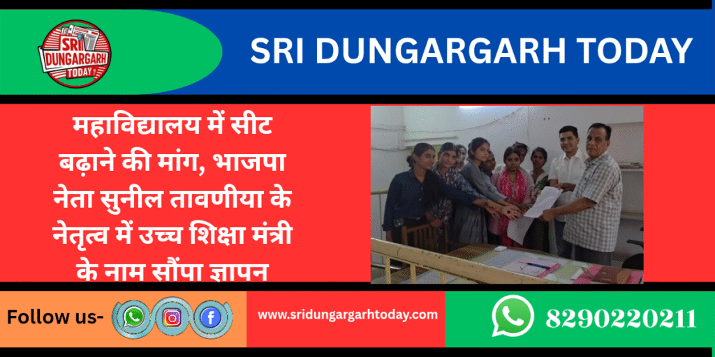 राजकीय सदु देवी पारख कन्या महाविद्यालय में सीटें बढ़ाने की मांग को लेकर मंगलवार को छात्राओं ने भाजपा नेता सुनील तावणीयां के नेतृत्व में ज्ञापन सौंपा।सुनील तावनियां ने बताया कि कॉलेज में फिलहाल 200 सीटें स्वीकृत हैं, जबकि इस बार 330 आवेदन आए है। ऐसे में 130 छात्राएं प्रेवश से वंचित हो रही है। सुनील तावणीयां ने कहा कि सरकार बालिका शिक्षा को बढ़ावा देने के लिए प्रयासरत है, इसलिए किसी भी छात्रा को पढ़ाई से वंचित नहीं होना चाहिए। इसी को लेकर उच्च शिक्षा मंत्री प्रेमचंद बैरवा के नाम ज्ञापन दिया ।