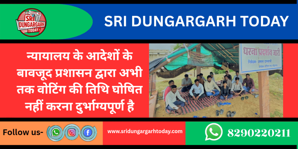 उपखंड के गांव धीरदेसर चोटियान में शराब ठेका बन्द करने की मांग को लेकर 361वें दिन ग्रामीणों का धरना जारी है । गाँव के युवा, बुजुर्ग एवं बच्चे लम्बे समय से शांति पूर्वक शराब बन्दी की मांग पर संघर्षरत है । न्यायालय द्वारा वोटिंग करवाने के आदेश के बावजूद प्रशासन द्वारा वोटिंग की दिनांक अभी तक घोषित नहीं करना दुर्भाग्यपूर्ण है । इस बरसात के मौसम में खुले टेन्ट के नीचे बैठे ग्रामीणों की कोई सुध लेने को तैयार नहीं है । आमजन के सामने बड़ा प्रश्न खड़ा हो रहा है कि न्यायालय के आदेशों के बावजूद सरकार एवं प्रशासन किसके दबाव में काम कर रहे है । गांव में शराब की भयंकर त्रासदी झेल चुके ग्रामीण कड़कड़ाती सर्दी से लेकर अब तक खुले मैदान में डटे हुए वोटिंग की तिथि घोषित होने का इंतजार कर रहे है । आज धरने पर एडवोकेट श्याम सुन्दर आर्य,गजानन्द शर्मा भंवरलाल,मनफूल, मदनलाल, रामुराम, मुन्नीराम, सीताराम, लेखराम, भगवानाराम,किशनलाल, तेजपाल,रुपाराम सांसी बजरंग सांसी,शंकर, किशन चोटिया उपस्थिति रहे ।