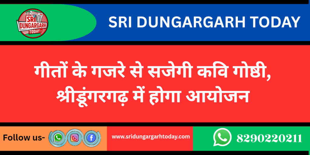 राष्ट्रभाषा हिन्दी प्रचार समिति, श्रीडूंगरगढ़ द्वारा आगामी 31 अगस्त, रविवार को प्रातः 10 बजे कवि गोष्ठी का आयोजन किया जाएगा। कार्यक्रम का शीर्षक “गीतों का गजरा” रखा गया है। इस विशेष अवसर पर अनिल कुमार ‘राजन्यंश’ अपनी कविताओं की प्रस्तुति देंगे। समिति ने बताया कि इस कवि गोष्ठी का उद्देश्य हिन्दी भाषा एवं साहित्य के प्रचार-प्रसार को नई ऊर्जा प्रदान करना है। कार्यक्रम की अध्यक्षता श्याम महर्षि करेंगे, जबकि छैलू चारण ‘छैल’ मुख्य अतिथि के रूप में शिरकत करेंगे। वहीं, डॉ. विमला महरिया विशिष्ट अतिथि होंगी। इस आयोजन में साहित्य प्रेमियों को एक से बढ़कर एक रचनाएँ सुनने का अवसर मिलेगा। समिति के संयोजक भगवती पारिक ‘मनु’ और अध्यक्ष श्याम महर्षि ने आमजन से अधिक से अधिक संख्या में शामिगेकर आयोजन को सफल बनाने की अपील की है। कार्यक्रम स्थल संस्कृति भवन, एन.एच. 11, न्यायालय के पास, श्रीडूंगरगढ़ निर्धारित किया गया है।