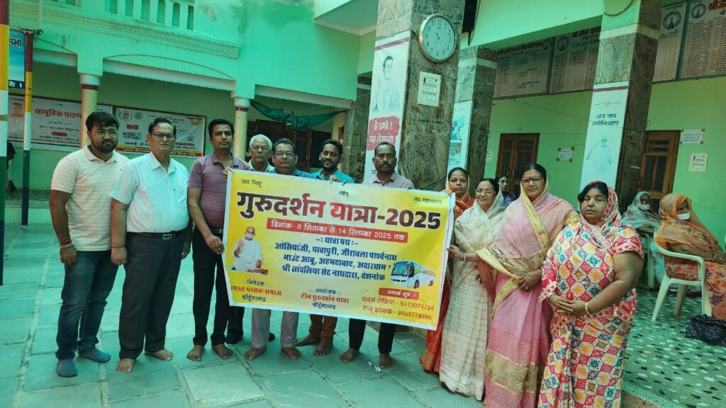 यात्रा के संयोजक व सभा के पूर्व मंत्री पवन कुमार सेठिया ने बताया की दिनांक 8 सितंबर से 14 सितंबर तक की इस यात्रा में ओसियां जी, पावापुरी, जीरावला, पार्श्वनाथ, माउंट आबू, अहमदाबाद ( गुरू दर्शन ) अक्षरधाम,नाथद्वारा, सांवळिया सेठ व देशनोक धाम के दर्शन व भ्रमण का कार्यक्रम रहेगा।