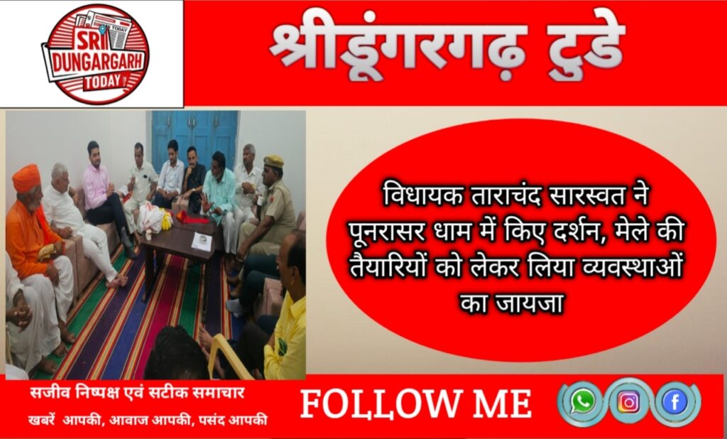 विधायक ताराचंद सारस्वत ने पूनरासर धाम में किए दर्शन, मेले की तैयारियों को लेकर लिया व्यवस्थाओं का जायजा
