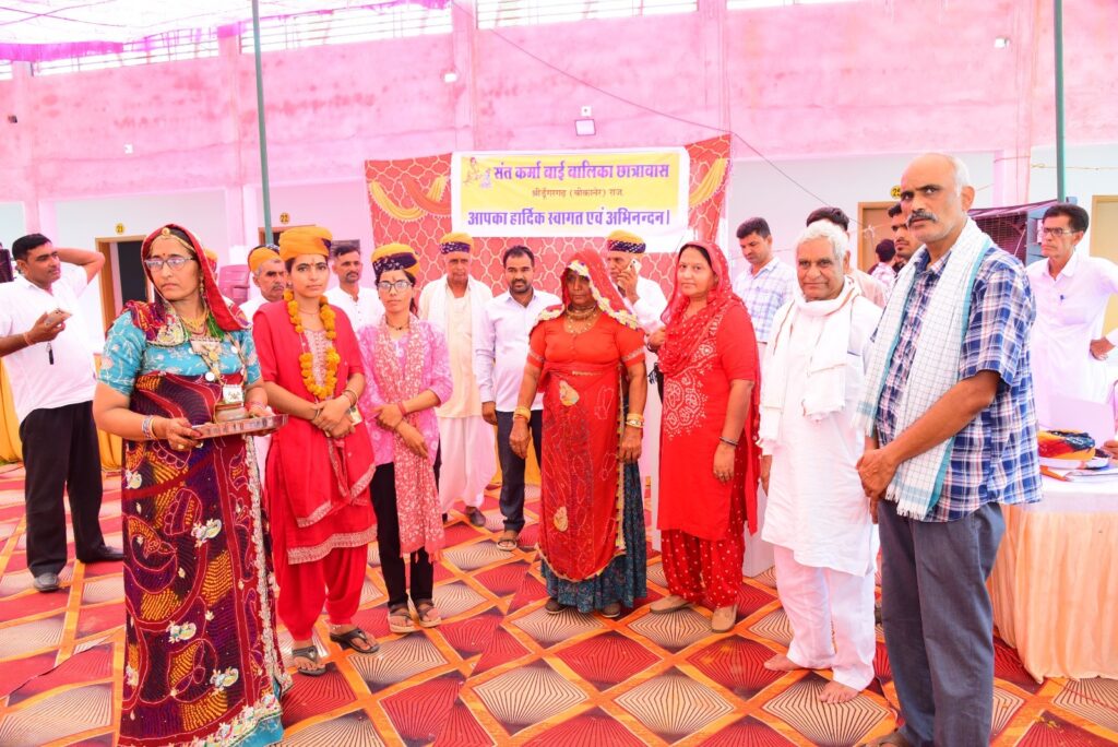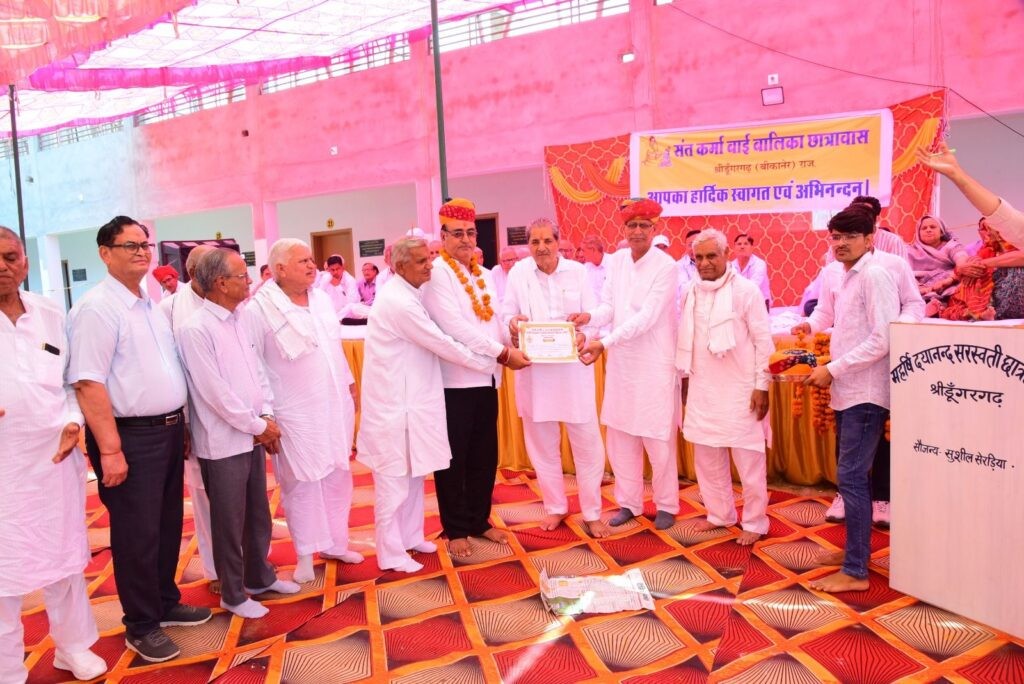 संत कर्मा बाई बालिका छात्रावास में नव निर्मित आधुनिक भवन में बालिका प्रवेश एवं भामाशाह सम्मान समारोह आयोजित हुआ। कार्यक्रम की अध्यक्षता एडवोकेट श्यामसुंदर आर्य ने की। सुबह हवन के साथ प्रारंभ हुए दिवंगत हीरा देवी धर्मपत्नी चोखाराम बाना की स्मृति में निर्मित मुख्य प्रवेश द्वार का अतिथियों द्वारा लोकार्पण किया गयासंस्था के मंत्री सुशील सेरडिया ने प्रतिवेदन प्रस्तुत करते हुए अब तक के कार्यो की प्रगति रिपोर्ट प्रस्तुत करते हुए आगामी प्रस्तावित कार्यो की जानकारी दी।