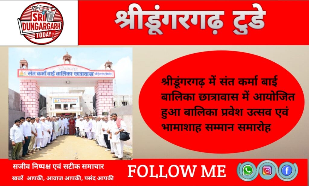 संत कर्मा बाई बालिका छात्रावास में नव निर्मित आधुनिक भवन में बालिका प्रवेश एवं भामाशाह सम्मान समारोह आयोजित हुआ। कार्यक्रम की अध्यक्षता एडवोकेट श्यामसुंदर आर्य ने की। सुबह हवन के साथ प्रारंभ हुए दिवंगत हीरा देवी धर्मपत्नी चोखाराम बाना की स्मृति में निर्मित मुख्य प्रवेश द्वार का अतिथियों द्वारा लोकार्पण किया गयासंस्था के मंत्री सुशील सेरडिया ने प्रतिवेदन प्रस्तुत करते हुए अब तक के कार्यो की प्रगति रिपोर्ट प्रस्तुत करते हुए आगामी प्रस्तावित कार्यो की जानकारी दी।