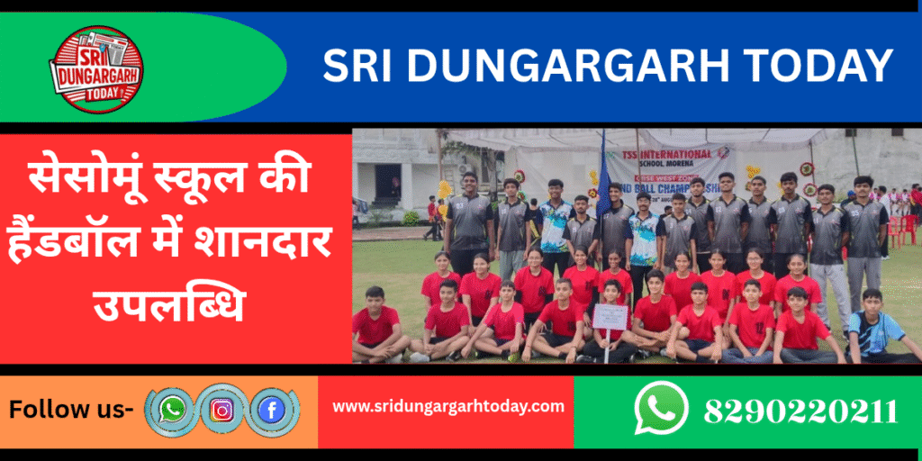 श्रीडूंगरगढ़। टी.एस.एस. इंटरनेशनल स्कूल, मुरैना (मध्यप्रदेश) में आयोजित सीबीएसई वेस्ट ज़ोन हैंडबॉल चैंपियनशिप 2025 में सेसोमूं स्कूल के खिलाड़ियों ने उत्कृष्ट प्रदर्शन कर विद्यालय का नाम रोशन किया।
