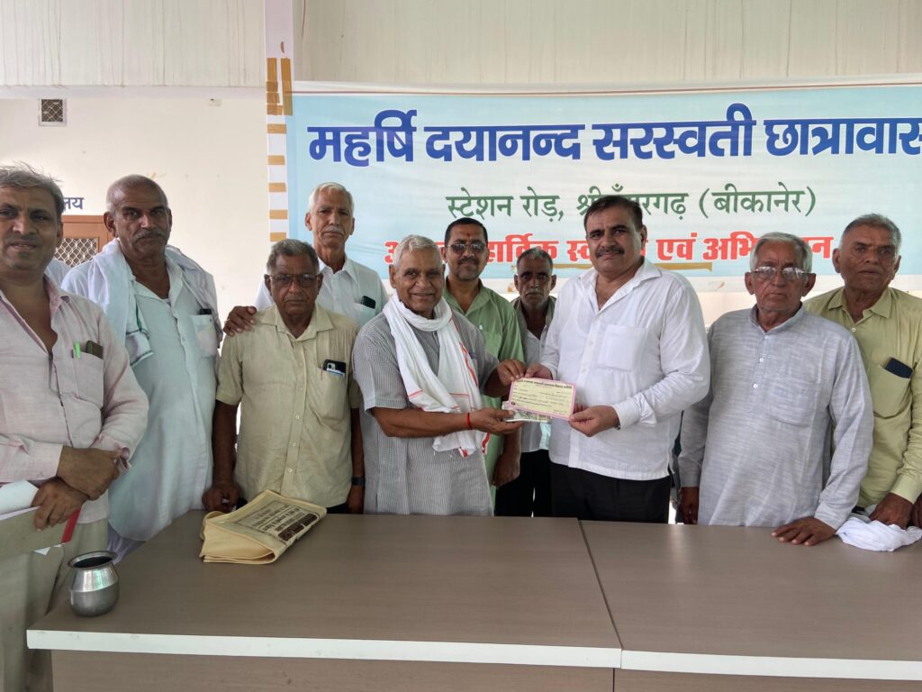 छात्रावास मैनेजमेंट कमेटी के अध्यक्ष एडवोकेट श्याम सुन्दर आर्य ने दानदाता परिवारों का आभार प्रकट किया ।