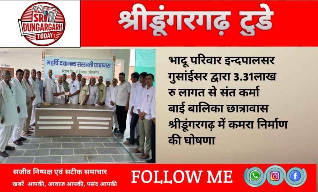 मामराज भादु पुत्र जैसाराम भादु निवासी इन्दपालसर गुसाईंसर ने 3.31 लाख की लागत से सुविधा युक्त कमरा निर्माण की घोषणा की ।