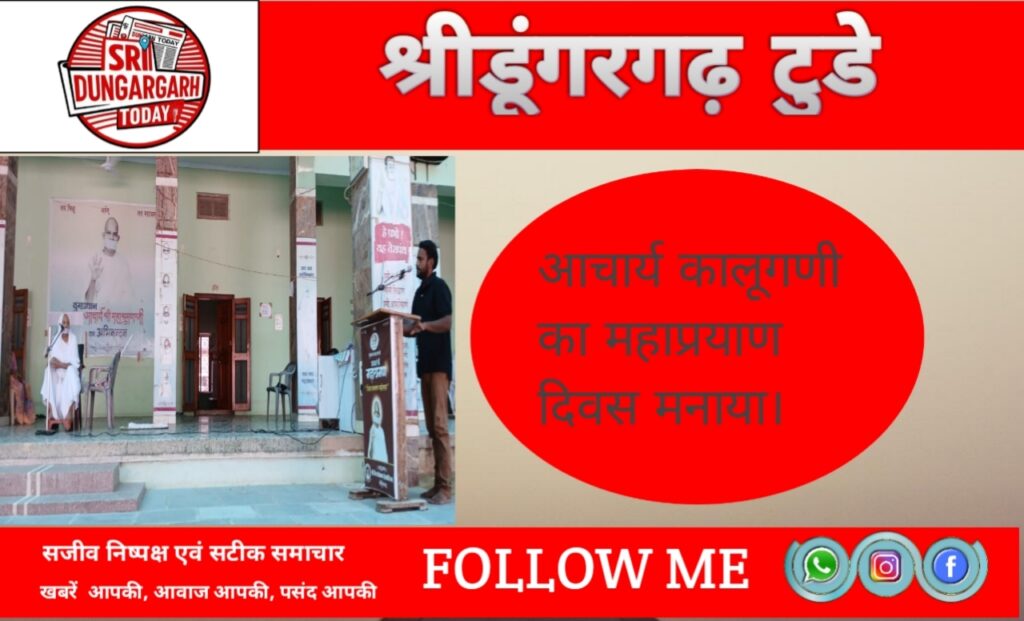 साध्वी संगीत श्रीजी एवं डॉ साध्वी परम प्रभाजी के सान्निध्य में मालू भवन में तेरापंथ के अष्टम आचार्य कालूगणी का महाप्रयाण दिवस मनाया गया। साध्वी संगीतश्रीजी ने कहा कि मघवागणी, माणकगणी, डालगणी जैसे तीन-तीन आचार्यों का सानिध्य प्राप्त करने वाले आचार्य कालूगणी विलक्षण प्रतिभा के धनी थे। उनका 27 वर्ष का शासन काल स्वर्णिम काल था। शिक्षा, सेवा, साधना एवं साहित्य के क्षेत्र में उल्लेखनीय विकास हुआ। संस्कृत, सूक्ष्म लिपिकला, चित्रात्मक कला के साथ साथ नवीन विहार क्षेत्रों की खोज कर धर्म प्रचार किया। अंतरंग साधना में स्वयं को नियोजित कर संघीय व्यवस्था में सक्रिय सेवा दी।