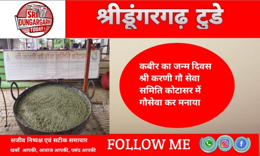 कबीर का जन्म दिवस श्री करणी गौ सेवा समिति कोटासर में गौसेवा कर मनाया