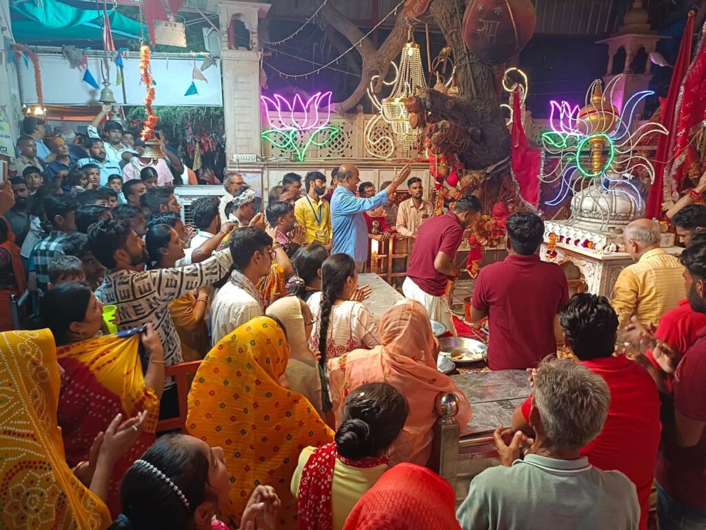 श्रद्धालुओं का उमड़ता सैलाब, बाबा की चौखट पर पहुंचने को हर कोई लालायित, मंदिर परकोटे में एक किमी लम्बी जिगजैग लाईन,हर मुख पर बाबा के जयकारे… यह नजारा था शनिवार को पूनरासर धाम में शनिवार को भरें भादवा मेले का। शनिवार को पूनरासर धाम में भरें मेले में लाखों श्रद्धालुओं ने अनुशासित तरीके से कतारबद्ध होकर मंदिर की चौखट पर मत्था टेक कर बाबा के दर्शन किए और मनौतियां मांगी। शाम को तेनानी परिवार बीकानेर की ओर से संध्याकालीन पूजा अर्चना के साथ ही पूनरासर धाम में तीन दिनों से चल रहा भादवा मेले विधिवत रूप से संपन्न हो गया। निज मंदिर में प्रवेश से पूर्व मंदिर सभागार में बागड़ी परिवार की ओर से फूलों से विशेष सजावट कर रंगोली सजाई गई। इसी के पास छप्पन भोग का प्रशाद सजाया गया। निज मंदिर में विशेष सजावट की गई तो मंदिर परकोटे पर भी रोशनी की विशेष सजावट थी।शनिवार तड़के पांच बजे बागड़ी परिवार बीकानेर की ओर से बाबा का विशेष शृंगार किया गया। पुजारी बेगराज बोथरा ने ज्योत प्रज्वलित कर बाबा की विशेष पूजा अर्चना की। इस मौके पर मंदिर सभागार में उपस्थित बड़ी संख्या में श्रद्धालुओं ने जोत के दर्शन कर हनुमान चालीसा के सामूहिक पाठ किया। इसी के साथ शुरू हुआ पूजा अर्चना व बाबा के दर्शनों का सिलसिला देर शाम तक चलता रहा। मंदिर परकोटे से काफी बाहर तक महिला-पुरुष श्रद्धालुओं की लम्बी कतारें लगी हुई थी। इसके बावजूद किसी भी श्रद्धालुओं के चेहरे पर शिकन तक नही थी लम्बे इंतजार के बाद निज मंदिर में प्रवेश करते ही श्रद्धालुओं के चेहरे खिल उठते। हर कोई बाबा के दर्शन कर खुद को सौभाग्यशाली मान रहा था। श्रद्धालुओं ने बाबा के दरबार में आटे-घी-शक्कर से बने चूरमे का भोग लगाकर माथा टेका व अपने संकटों को हरने के साथ ही कृपा दृष्टि बरसाने की अरदास की। श्रद्धालुओं ने खेजड़ी बालाजी मंदिर मे भी धोक लगाई तथा पवित्र खेजड़ी को मोली बांधकर मन्नतों के नारियल बांधे। खेजड़ी बालाजी मंदिर मे श्रद्धालुओं ने गठजोड़े के साथ जात दी। नवजात शिशुओं झडूला उतरवाया।