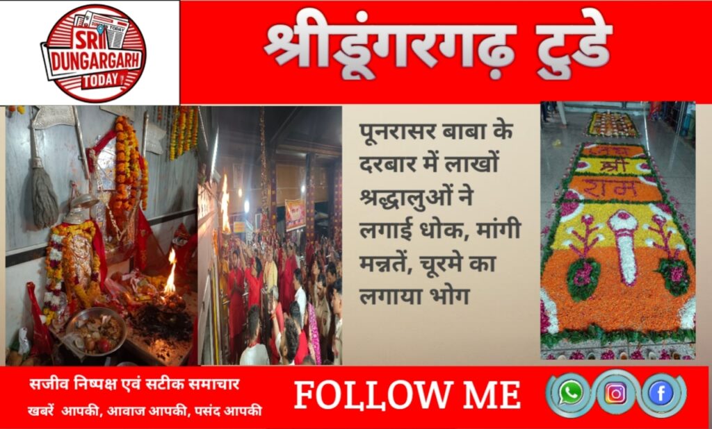 पूनरासर बाबा के दरबार में लाखों श्रद्धालुओं ने लगाई धोक,मांगी मन्नतें चूरमे का लगाया भोग