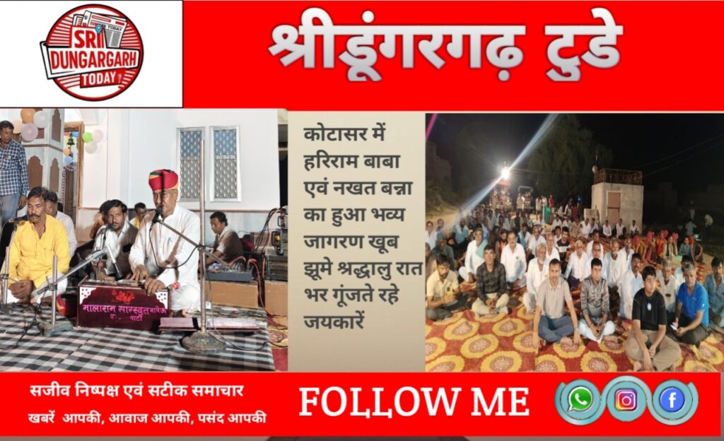 कोटासर में हरिराम बाबा एवं नखत बन्ना का हुआ भव्य जागरण खूब झूमे श्रद्धालु रात भर गूंजते रहे जयकारें