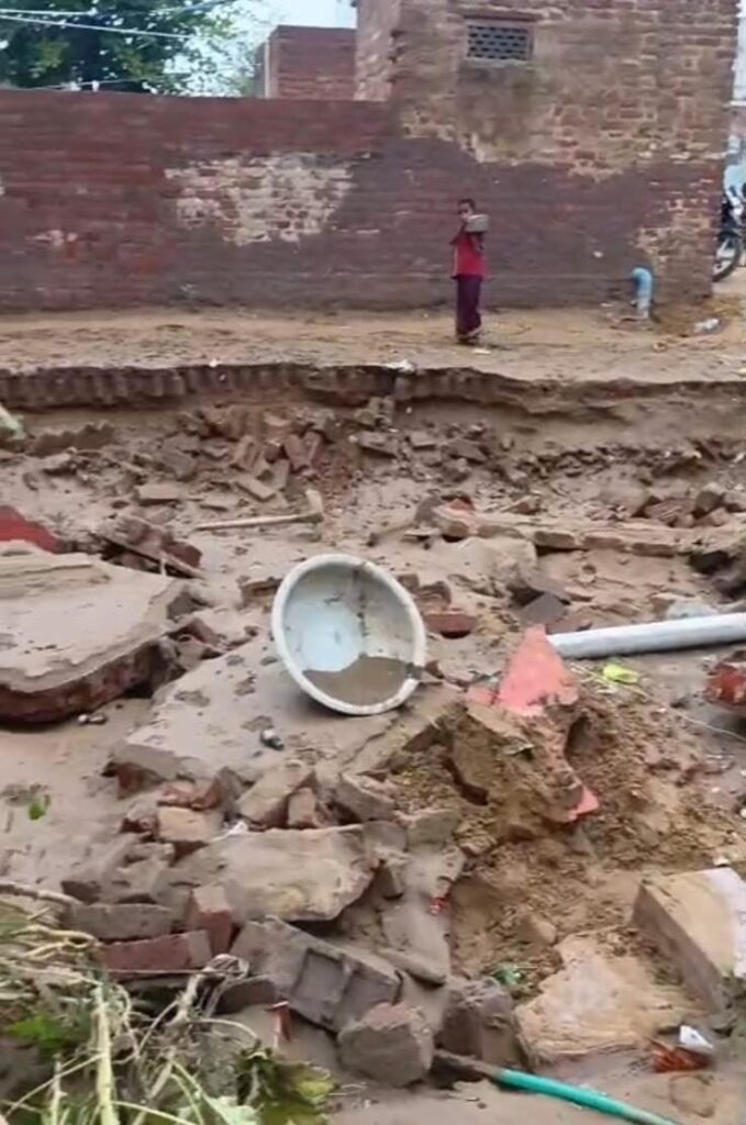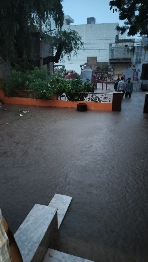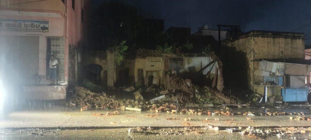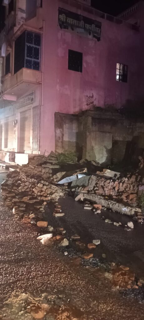रविवार को कस्बे में रिकॉर्ड तोड़ बरसात हुई है। शाम 5 बजे के बाद 122 एमएम बरसात हुई। बूंदाबांदी का दौर देर रात तक जारी रहा। श्रीडूंगरगढ में निचले इलाके जलमग्न है। लोग राहत का इंतजार कर रहें है। दुकान, मकान, कई दीवारें ढह गई वहीं सड़कें व रास्तों में भारी कटाव आ गया है। अमीर पट्टी बाजार में एक मकान में दुकान देर रात भर्राभरा कर गिर गई। यहां गजानंद सोनी की हवेली का एक हिस्सा भी गिर गया। परिवार यहां मलबे के नीचे 20 संदूकें, 2 अलमारी दब गई है। वहीं राशन पानी का सामान, कपड़े सहित घर का सारा सामान पानी में भिग गया है। नुकसान का आंकलन अभी नहीं हो पाया है। इसी के लगते हुए अमीर पट्टी में एक दुकान व एक हॉल की दीवार भी गिर गई। जिसमें राशन का सामान नीचे दब गया है व नुकसान का आंकलन मलबा हटने के बाद ही किया जा सकेगा। गौरव पथ रोड़ पर पुराना मकान भी गिर गया है। वही बिग्गा बास पानी के तेज बहाव में गणेश मंदिर की दीवार ढह गई व पानी मंदिर तक चला गया। वार्ड 33 में कटाव होने से सड़क ही बह गई और गहरा गड्ढा हो गया। वहीं कोर्ट के पीछे स्थित योग मैदान की दीवार जो कुछ दिन पहले ही पालिका ने बनाई थी गिर गई। यहां मिट्टी ढह गई और खाई सी बन गई। बिग्गा बास डागा के घर में पानी में पानी भर गया। वही स्टेशन रोड़ पर पुराना बिजली घर भरभरा कर गिर गया लोगों को प्रशासन से राहत व मदद दिए जाने की उम्मीद है।