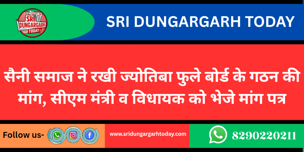 सैनी समाज ने रखी ज्योतिबा फुले बोर्ड के गठन की मांग, सीएम मंत्री व विधायक को भेजे मांग पत्र