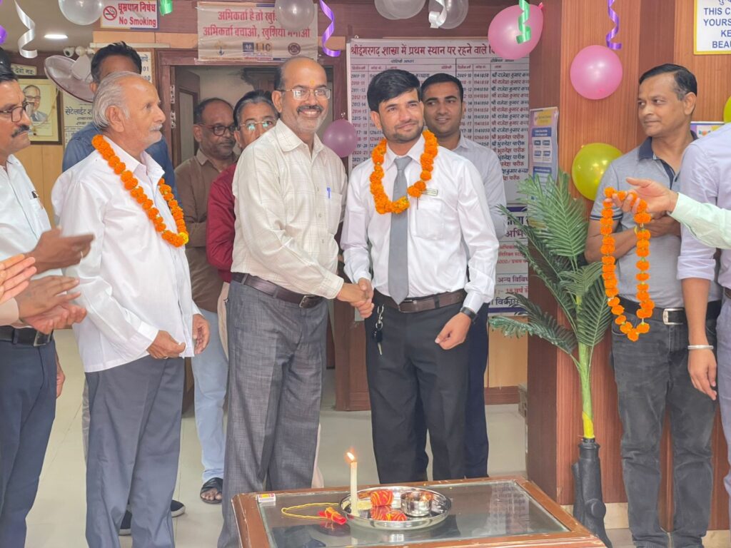 भारतीय जीवन बीमा निगम की 69 वीं वर्षगांठ सेटेलाइट शाखा श्रीडूँगरगढ़ में आनंदमय व उत्साहपूर्वक मनाई गई। श्वेता चौहान ने बहुत ही शानदार रंगोली बनाकर कार्यालय को बहुत ही शानदार सजाया कार्यक्रम की शुरुआत दीप प्रज्वलित कर हुई  निगम गीत के साथ शुरू हुए इस कार्यक्रम में सेटेलाइट शाखा प्रबंधक श्री के.सी.मीणा ने निगम की उपलब्धियों की विस्तार से जानकारी दी । उपस्थित जनों ने उपलब्धियां सुनकर तालियां बजाकर प्रसन्नता के भाव व्यक्त किए। इस अवसर पर कर्मचारियों अभिकर्ताओं व पॉलिसी धारकों को बधाईयां एंव शुभकामनाएँ दी।  सीनियर सिटीजन सामाजिक कार्यकर्ता व अखिल भारतीय पत्रकार प्रेस क्लब श्रीडूंगरगढ़ के अध्यक्ष तोलाराम मारू का माला पहनाकर सम्मानित किया गया। पत्रकार तोलाराम मारु ने भी सभी को स्थापना दिवस की बधाई शुभकामनाएं देते हुए निगम की उपलब्धियां व्यक्त करते हुए अपने विचार व्यक्त किये। इस अवसर पर,वरिष्ठ पत्रकार तोलाराम मारू ने भी  निगम‌ के कर्मचारियों व अभिकर्ताओं को माला पहनाकर सम्मानित किया  इस अवसर पर शाखा प्रबंधक के.सी.मीना,एबीएम दीपक सारण,डबल ए.ओ दिनेश कथूरिया,सुनीता जैन विकास अधिकारी के.एल. जैन,एस के सोनी, आर.के. कच्छावा,भूवनेश पारीक,जी.एस.सारस्वत, जयसिंह अभिकर्ता लक्ष्मण सुथार संदीप शर्मा ओमप्रकाश जाखड़ कु श्वेता चौहान आदि उपस्थित रहे।