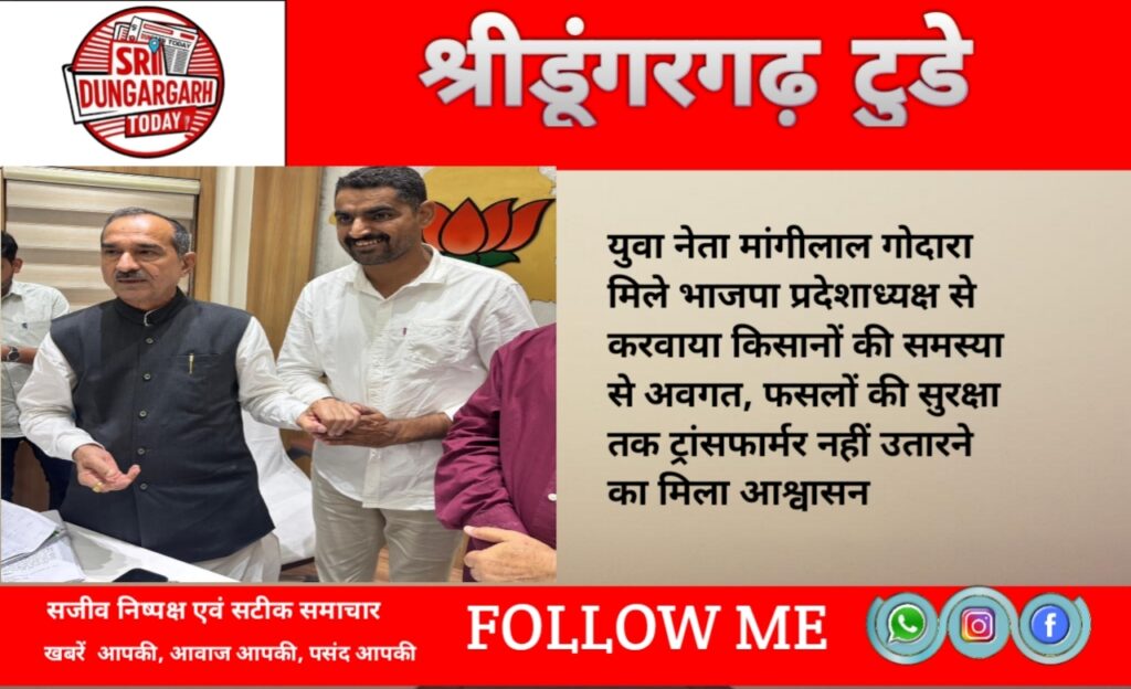 युवा नेता मांगीलाल गोदारा मिले भाजपा प्रदेशाध्यक्ष से करवाया किसानों की समस्या से अवगत, फसलों की सुरक्षा तक ट्रांसफार्मर नहीं उतारने का मिला आश्वासन